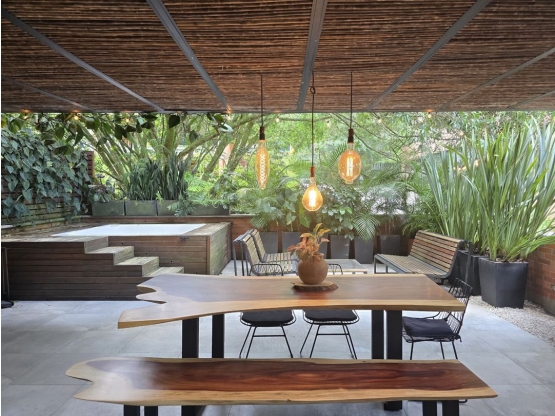 Terraza con jacuzzi y vista verde