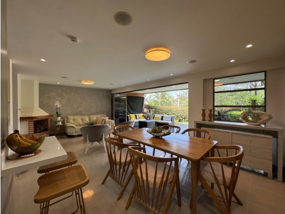 Baño social, jardín con una hermosa vista, cocina abierta con lavaplatos amplia y muy iluminada, estudio con una excelente iluminación, sala y comedor unidos a la zona del jardín lo cual brinda tranquilidad y mucha frescura, sistema de sonido en la parte del jardín