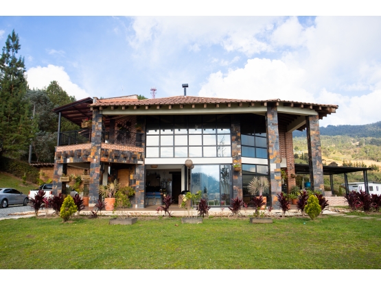 Venta Casa en Envigado, sector La Catedral. Es una casa campestre cerca de la ciudad, con una arquitectura rustica/moderna y una construccion bioecologica. Tiene 4 habitaciones amplias, todas con vestier y baño, la principal con balcón. En el primer nivel tiene una habitacion adecuada para personas con movilidad reducida. Tiene amplios ventanales que le permiten buena iluminacion y vista. Tiene en el segundo nivel un estudio con balcón. Tiene baño social, espacio para gimnasio, invernadero y zona para bbq con horno para pizzas de piedra. Tiene una vista hermosa y es un lugar muy tranquilo. El predial es 300 mil tremestral.